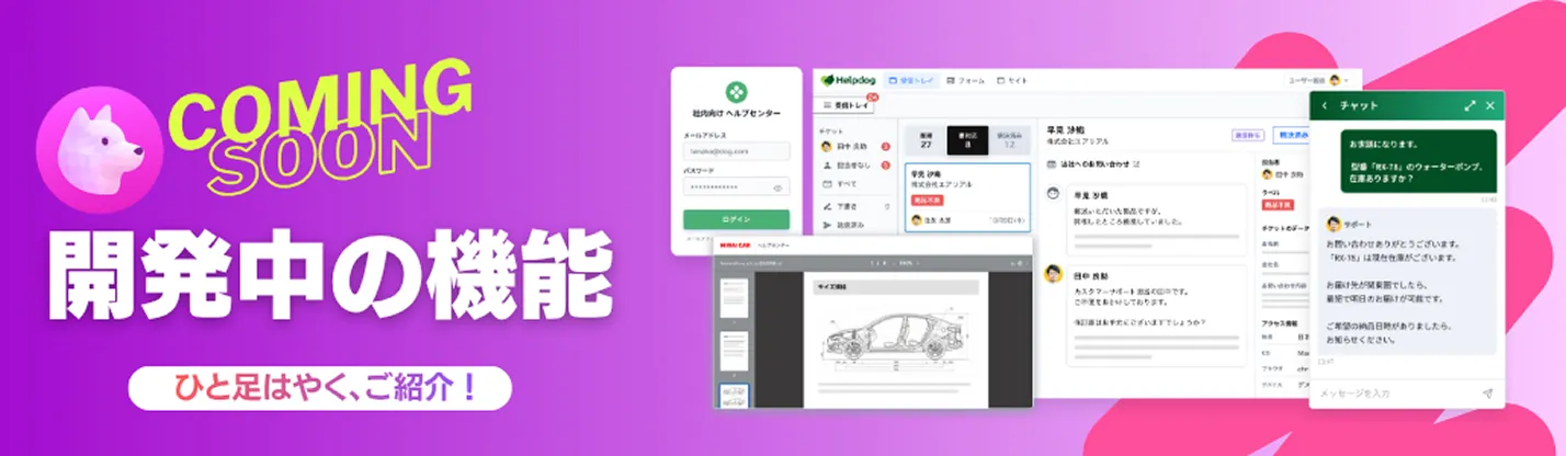 ヘルプドッグの開発中の機能をご紹介します。持続可能な顧客ファーストのサポート体制の実現に向けて、ヘルプドッグのさらなる進化にご期待ください。