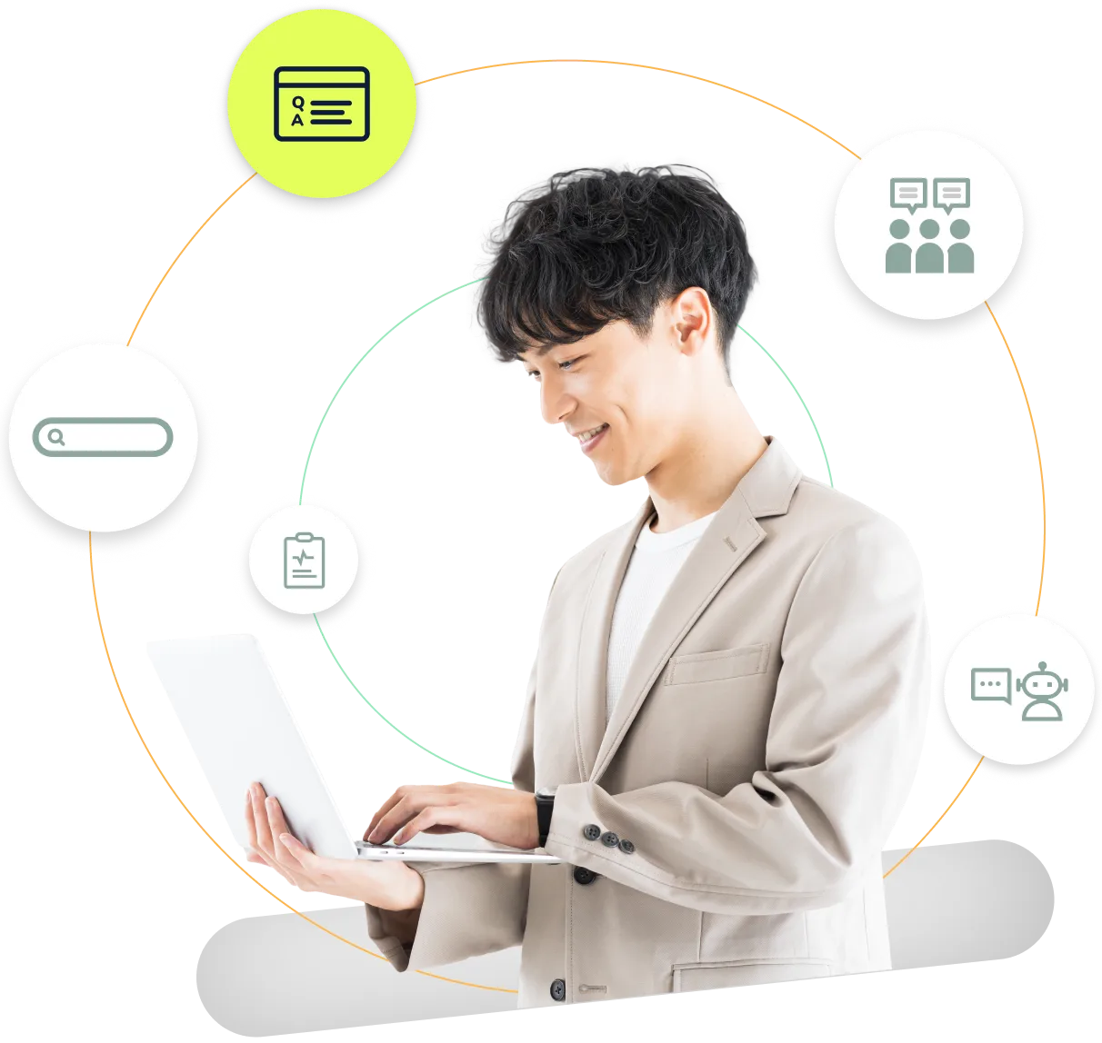 FAQサイトやAIチャットボット、AI検索、AIフォームで解決。