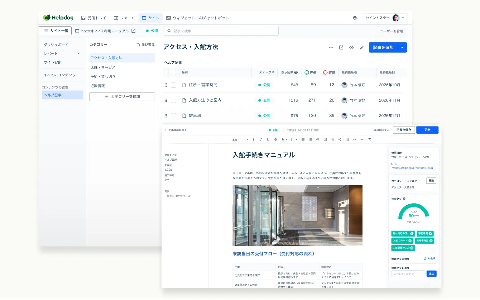 | 3 | 課題 マニュアル作成が特定の担当者に依存しており、改定に1、2ヶ月かかることや、品質のばらつきが課題となっていた 効果 チームで記事を管理できるようになり、必要なタイミングで更新できる体制を構築。属人化の解消にもつながった |