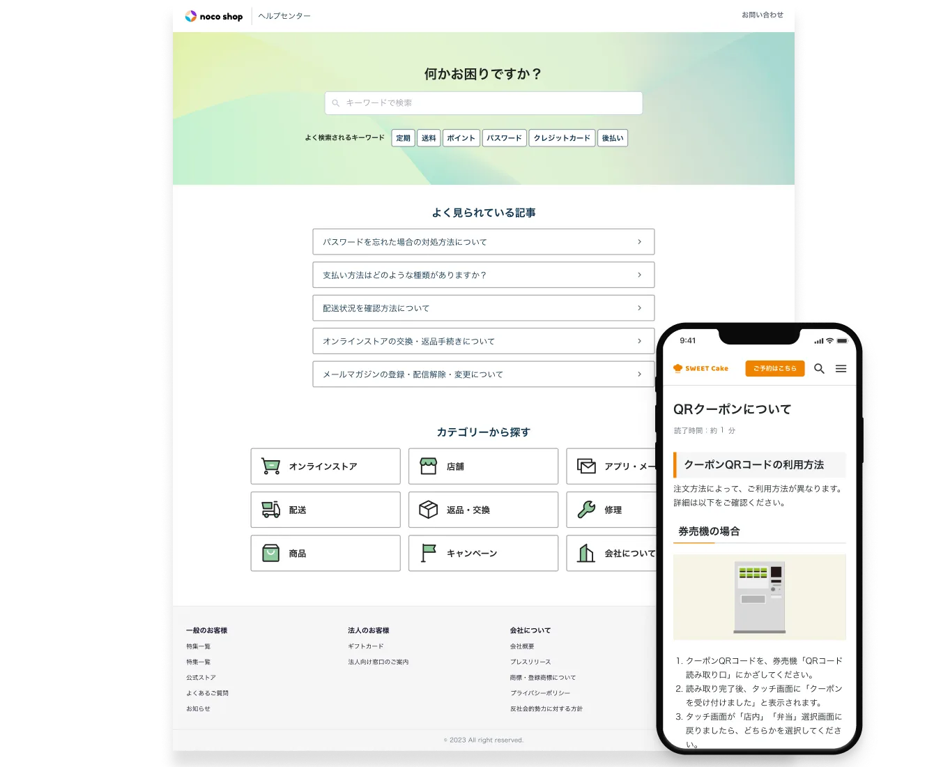 専門知識なしで、誰でも見やすく整理されたFAQサイトを作成可能。ロゴ・色・OGPなどブランドに合わせたカスタマイズも可能で、Webview対応によりスマートフォンアプリにも開発不要で組み込み可能です。
