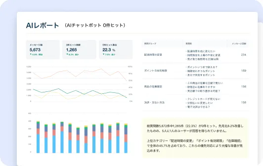 AIがFAQサイトを毎日自動診断し、検索ヒット0件・再検索の多い記事・未読記事などを洗い出し。優先度つきで改善提案を提示するため、誰でもすぐに改善着手が可能。FAQ運用のPDCAが自然に回り始めます。
