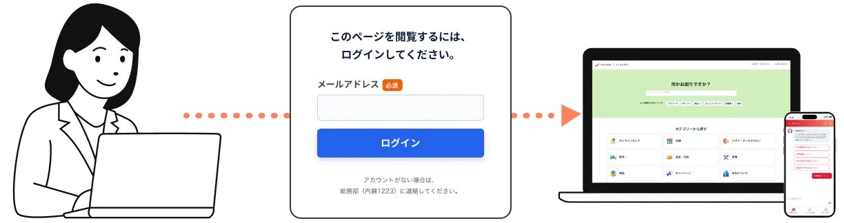 貴社システムやECサイトなどの会員基盤と連携し、 ログイン状態を引き継いだままヘルプドッグを利用できます。