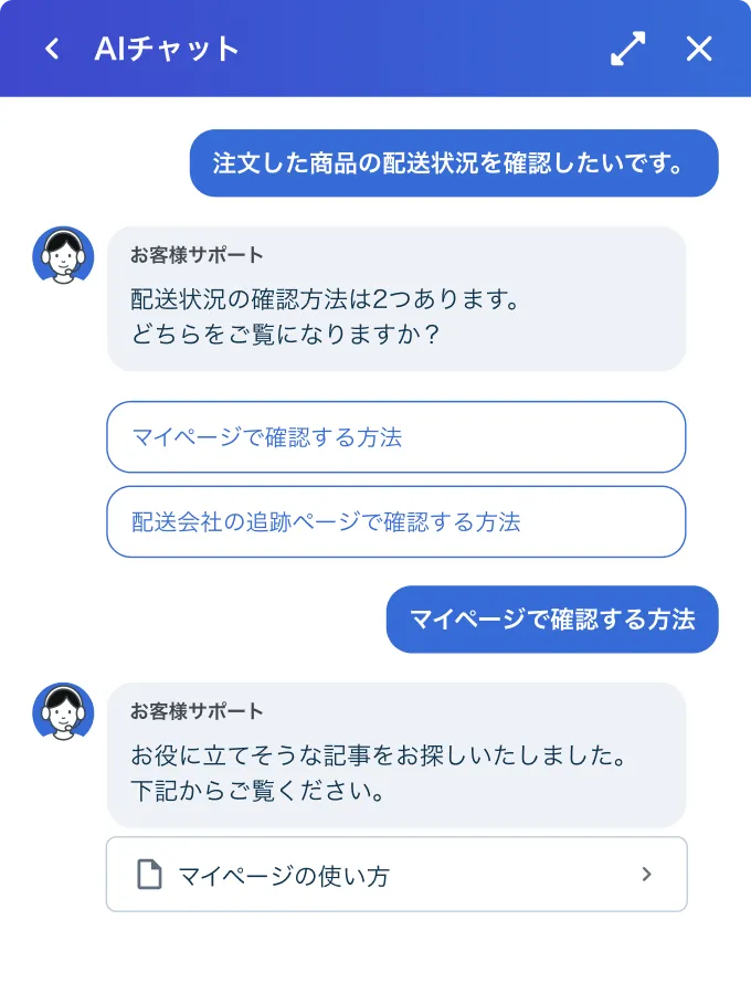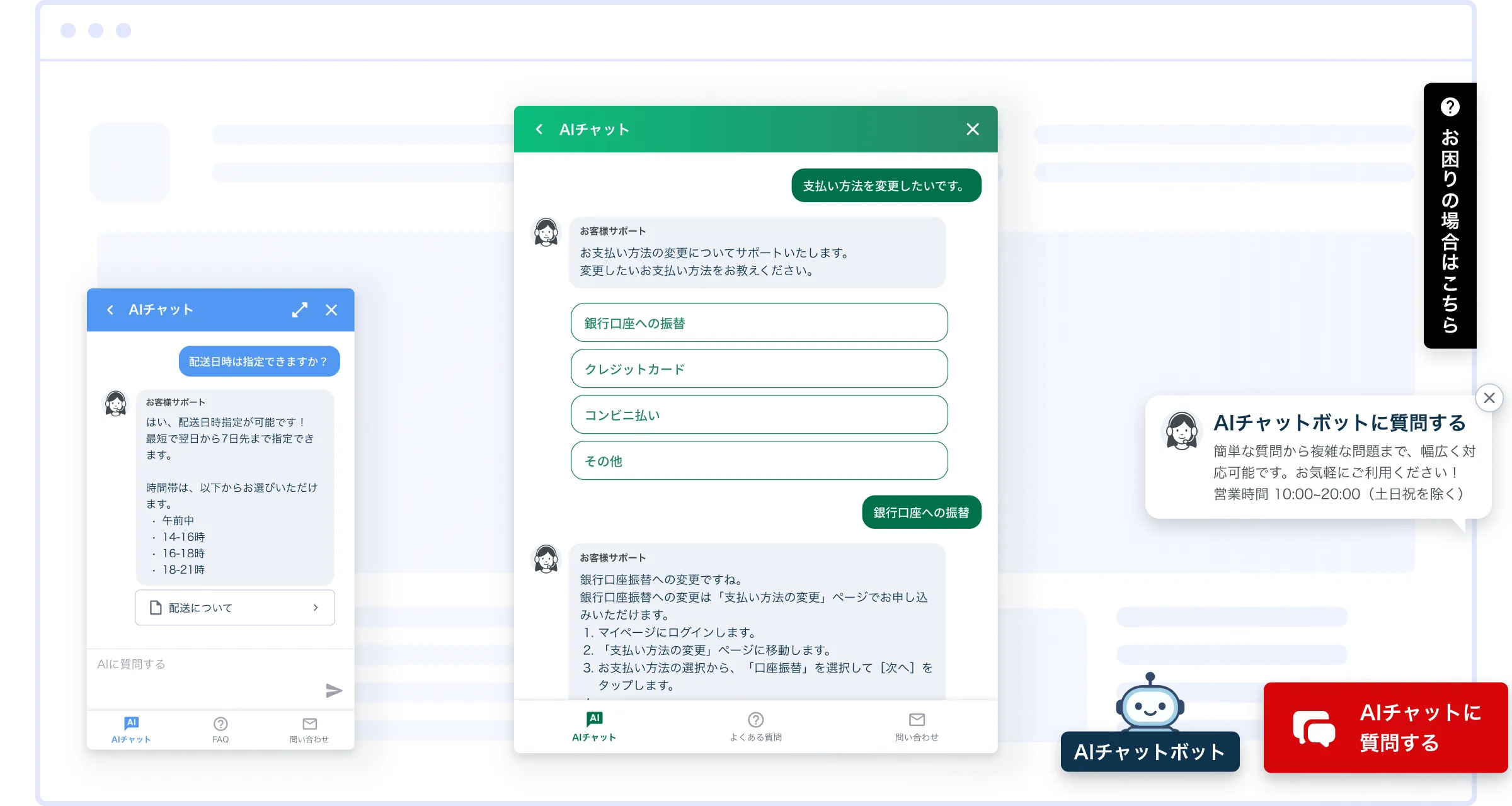 お客様は見ているページから離れずに質問でき、探す手間や担当者への連絡なしに答えを得られます。