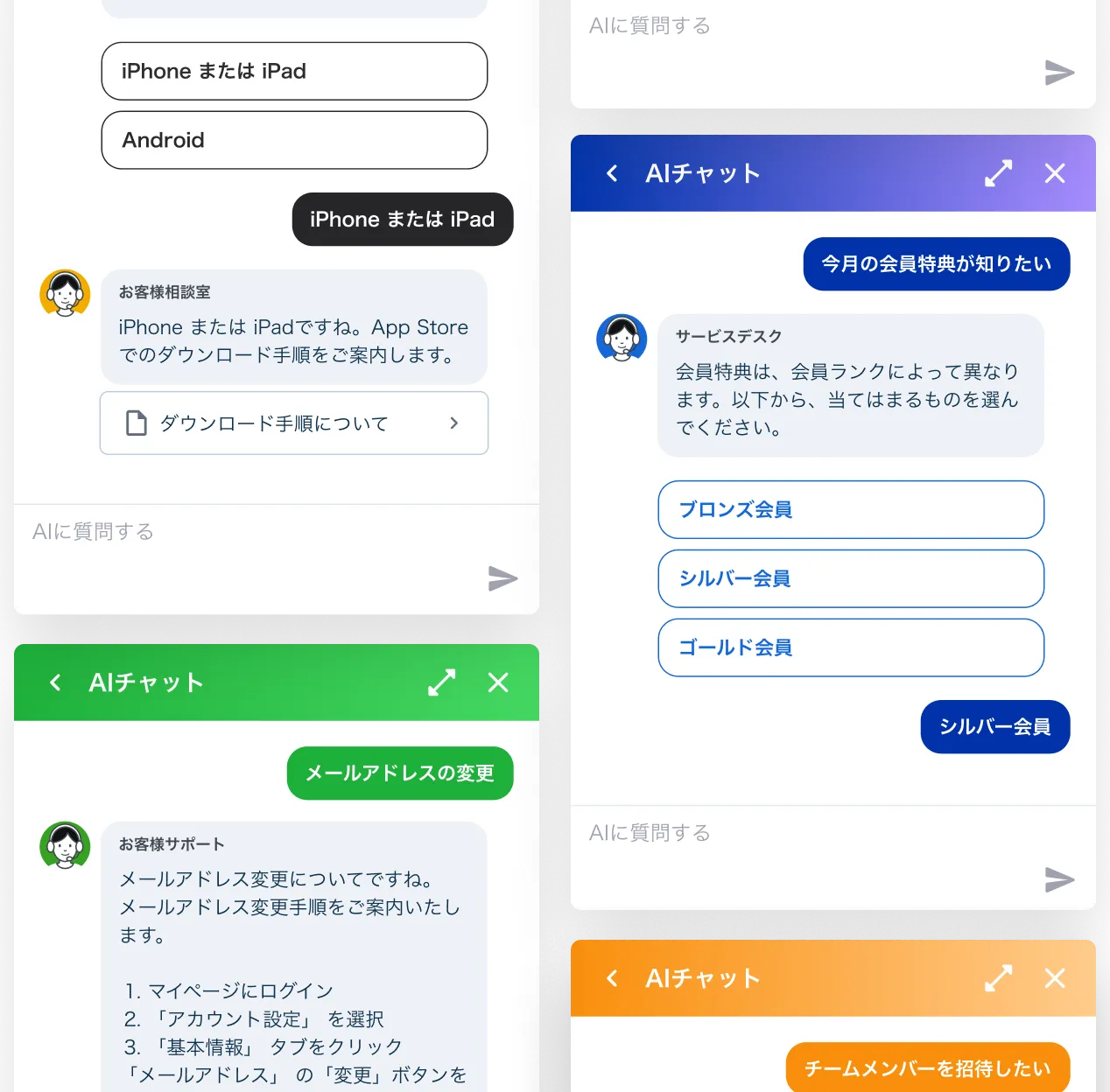 幅広い質問に柔軟に対応し、自然な会話体験を提供したい場合に向いています。