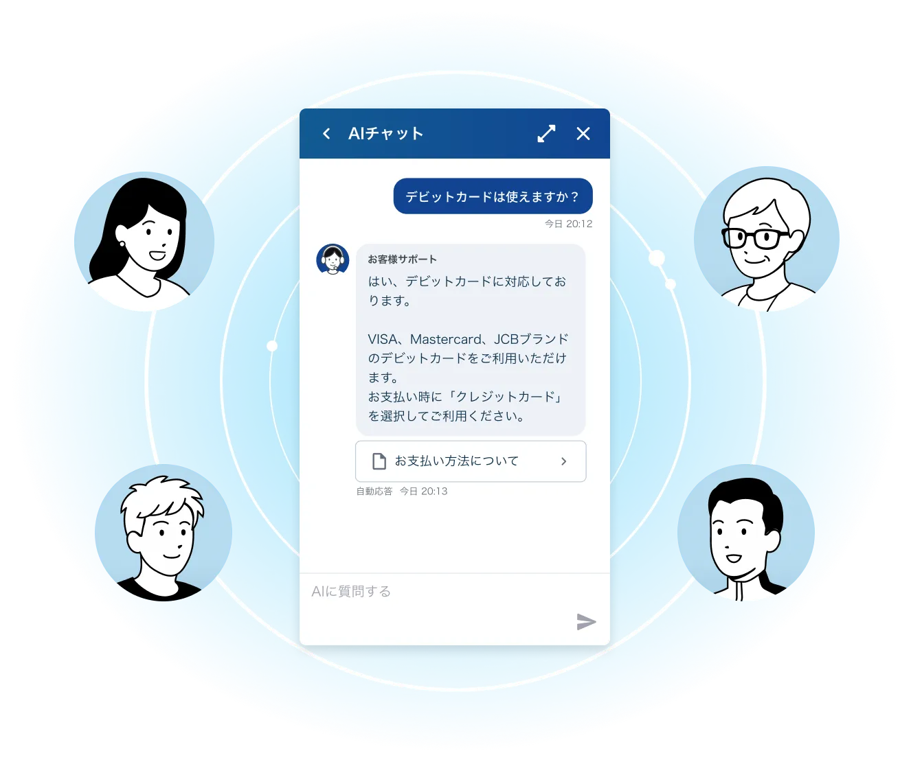 繰り返し寄せられる質問をAIが即時に対応することで、サポート担当者の負担を減らし、より重要な業務に集中できます。