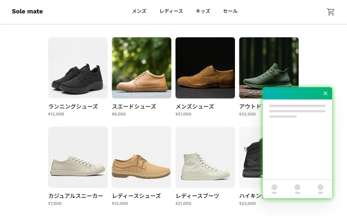 製品サイトやECサイト、社内ポータルや業務システムまで幅広く設置できます。