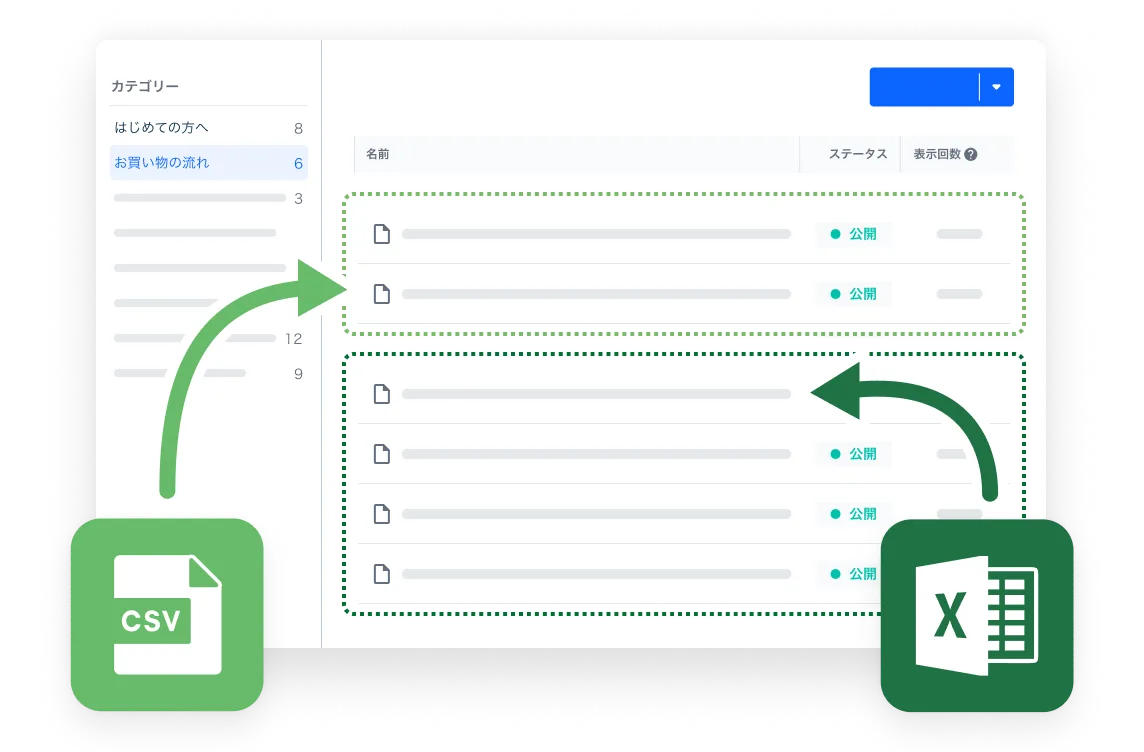 CSVやExcelファイルに保存された記事タイトルと本文を一括で登録できます。 AIが内容を解析し、自動でカテゴリ分類を行います。