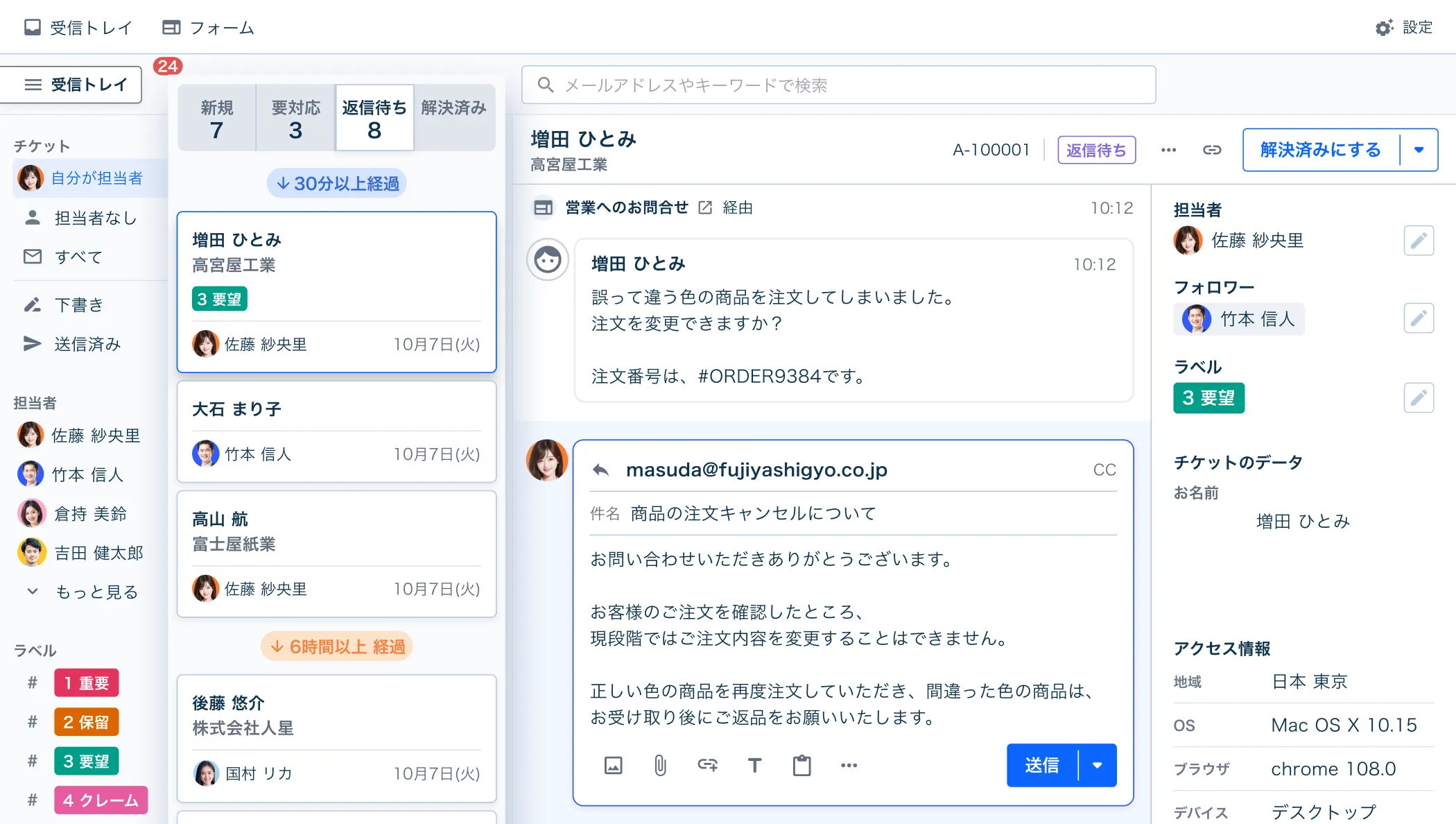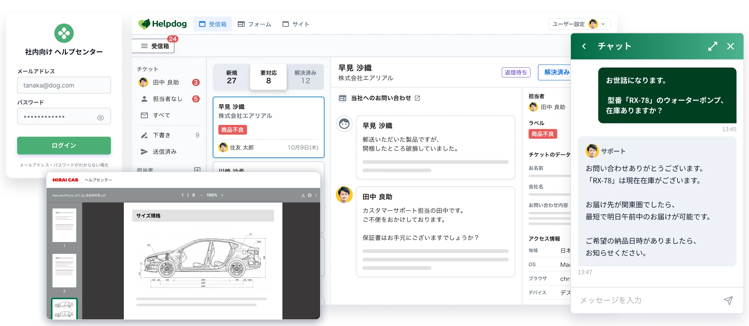ヘルプドッグ上で、問い合わせの受付から返信まで完結。