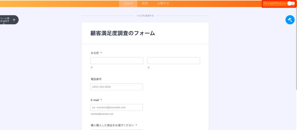 フォームが完成したら、プレビューでフォームの仕上がりを確認し、必要であれば追加の修正を行います。