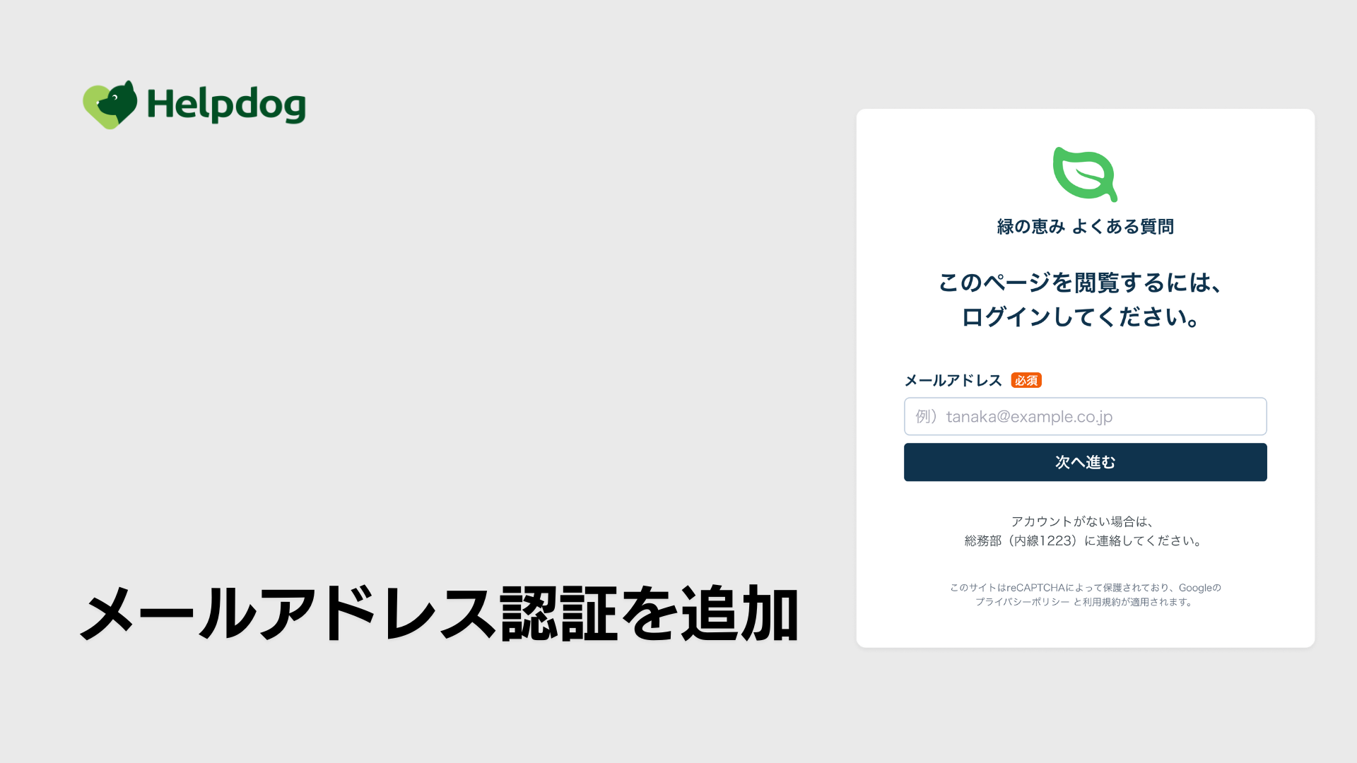 このたび、ヘルプドッグの認証機能として「メールアドレス認証」の提供を開始しました。本アップデートにより、FAQサイトやAIチャットボット、フォーム、ウィジェットを、あらかじめ許可した読者のみに限定して公開できるようになります。社内向けのFAQサイトや、取引先・関係者限定のAIチャットボットなど、公開範囲を明確に制御した運用が可能になりました。