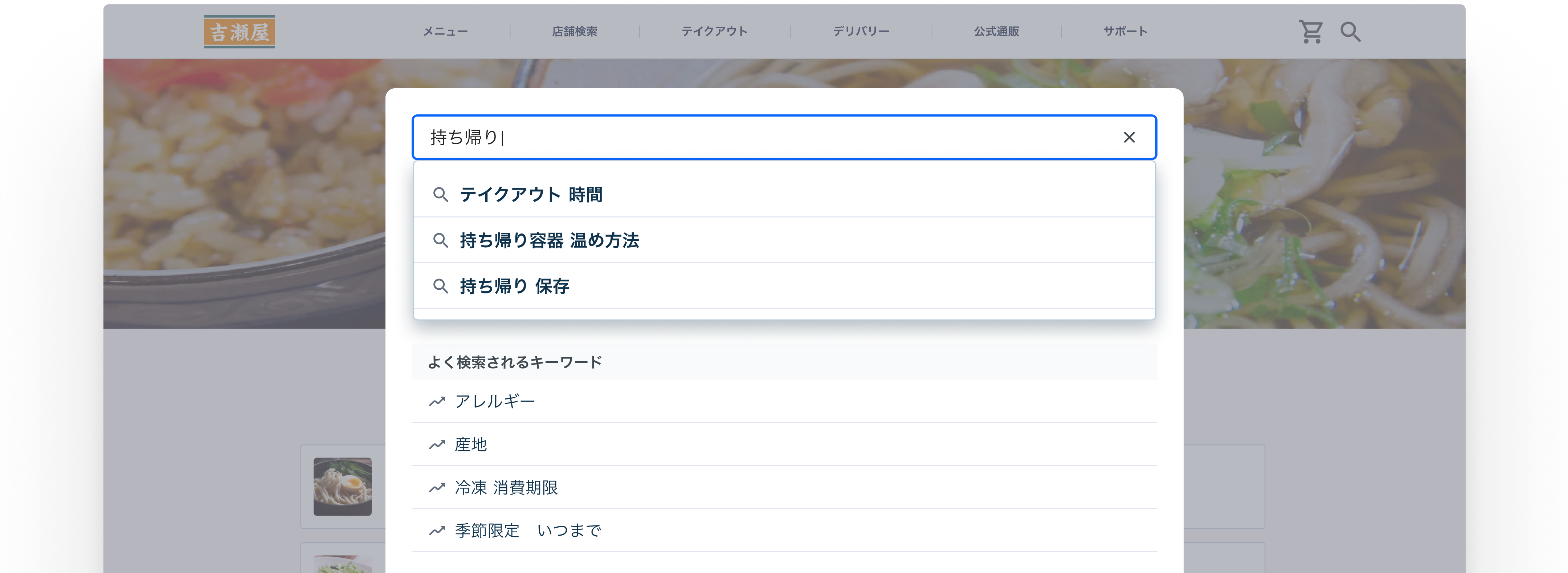 多くの顧客は、自分の言葉で検索しようとするものの、企業側の用語との不一致(表記揺れや語彙の違いなど)によって、必要な情報にたどり着けずにフォームや電話による問い合わせへつながるケースが多く見られます。ヘルプドッグでは、検索ボックスに入力されたキーワードに対して、入力途中からAIが内容を予測し、関連性の高いFAQ記事をリアルタイムで提示します。入力者の意図を先回りして補完し、曖昧な検索語や言い回しの違いにも柔軟に対応できるため、「検索しても見つからない」という問題を大きく軽減します。